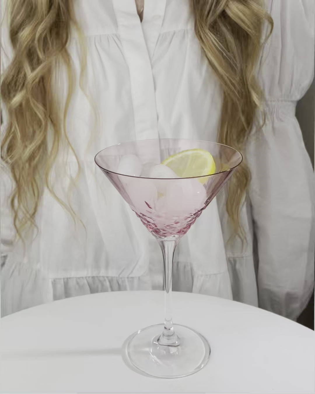 Skandinaviske håndslipte cocktailglass i rosa krystall med fasettslipning fra Frederik Bagger.